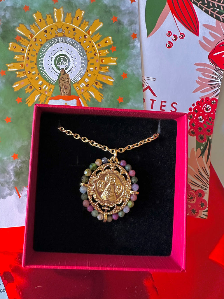 Medalla de la Virgen del Pilar con turquesas y esmalte turquesa