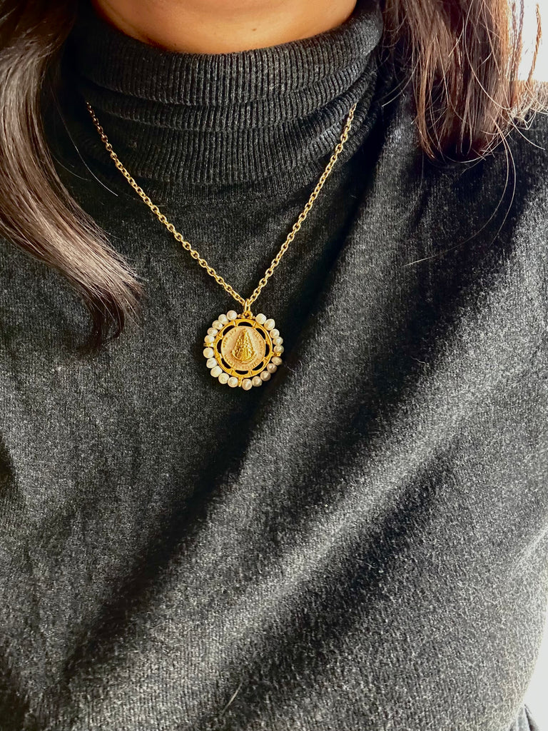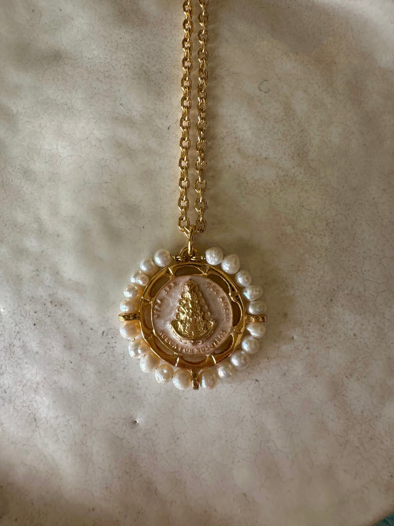Medallas hechas a mano de Nuestra Señora del Rocío.
