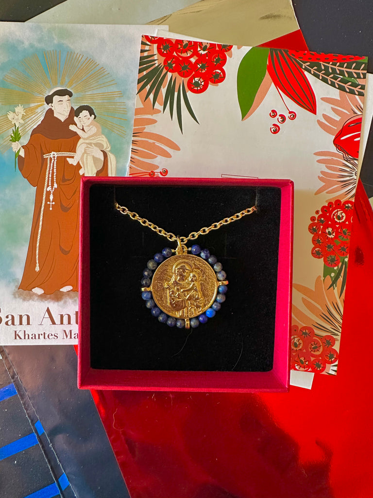 San Antonio está considerado como el santo que ayuda a encontrar objetos perdidos, vela por los solteros y protege a los hijos. Esta medalla es un símbolo de su poderosa intercesión y devoción.